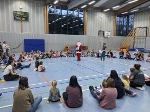 Im Kinderturnen brachte der Nikolaus die Geschenke sogar persönlich vorbei, was Kinderherzen schneller schlagen ließen. Gemeinsam sangen wir stimmungsvolle Lieder, lauschten seinen warmherzigen Worten und freuten uns über die liebevoll gebastelten Geschenke. Für jedes Kind hatte er einen gesunden Apfel und eine köstliche Schokolade im Gepäck – eine kleine Freude, die viele unvergessliche Momente und strahlende Kinderaugen hervorzauberte.
